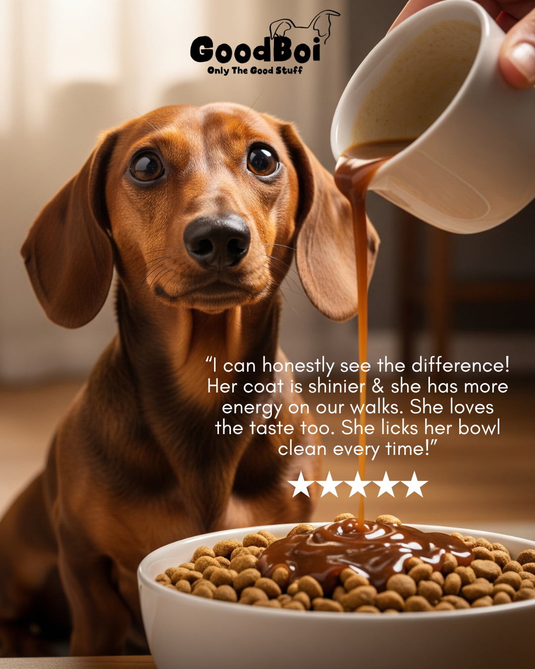 At GoodBoi, we believe in feeding from the heart — with nutrient-dense, small-batch meal enhancers that celebrate wellness, balance, and nourishment in every pour.