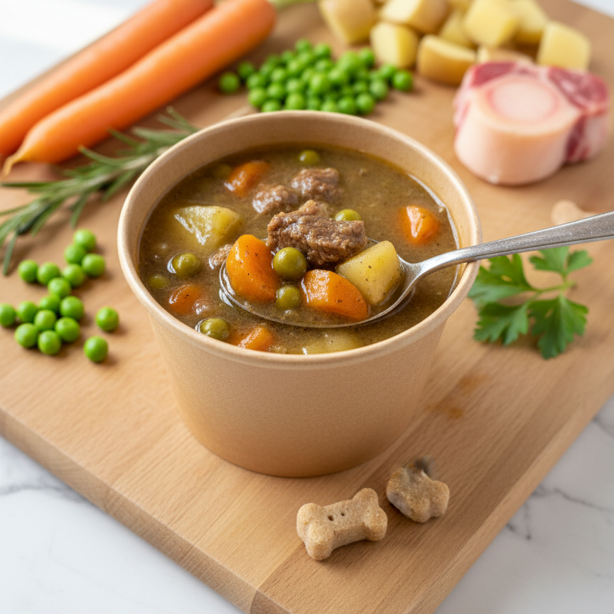 GoodBoi’s Beef Homestead Stew is crafted to bring real comfort and nourishment back to your dog’s daily meals. Slow-cooked in small batches, this hearty recipe blends tender beef chuck, a vibrant selection of garden vegetables, and naturally nutritious superfoods to create a warm, spoonable stew with genuine homestyle goodness in every bite.