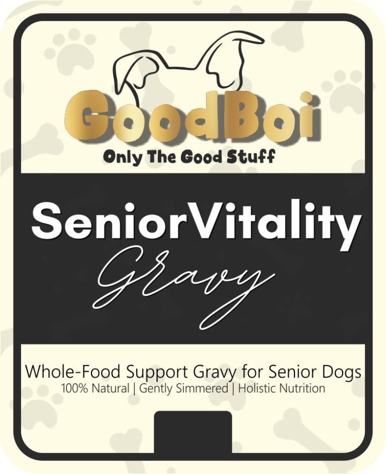 A wholesome, slow-simmered gravy crafted especially for senior dogs. SeniorVitality Gravy Concentrate delivers real nutrition from the earth and sea to help maintain mobility, immunity, and zest for life — supporting graceful aging, one comforting spoonful at a time.