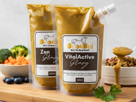 Turn everyday meals into nourishing feasts with GoodBoi Gravy Meal Enhancers — slow-simmered, whole-food concentrates crafted from real meat, vibrant veggies, and functional botanicals. Each gravy is designed to support specific areas of your dog’s wellbeing — from gut balance and joint care to skin health, calmness, and vitality — while adding hydration, flavour, and irresistible aroma to every bowl.